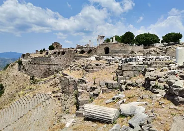 After breakfast we drive to Pergamum, actually called Bergama. It is one of the sites of the Seven Churches of Asia [Rev. 1:11; 2:12]. Here we explore the impressive Acropolis, the steepest theatre in the world, the Asklepion, famous medical Centre of classical times, see the Altar of Zeus which is mentioned as the «Throne of Satan» in the book of Revelation, the marble columns of the Temple of Trajan and the Library which was foremost in the world and was long a rival of the equally famous Library of Alexandria in Egypt. Its wealth of volumes was estimated at over 200,000. It inspired the invention of parchment.